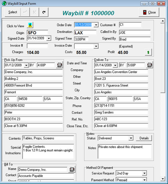 Forms and Reports Once you have entered a Waybill, you can create various forms and reports. The best way to learn these is just to try some and see which ones fit your business needs the best. Logos and information on reports can be customized, if needed. When printing a form or report, you can change printers by selecting the Printer Setup button. See our FAQs for detailed information on how to do that.